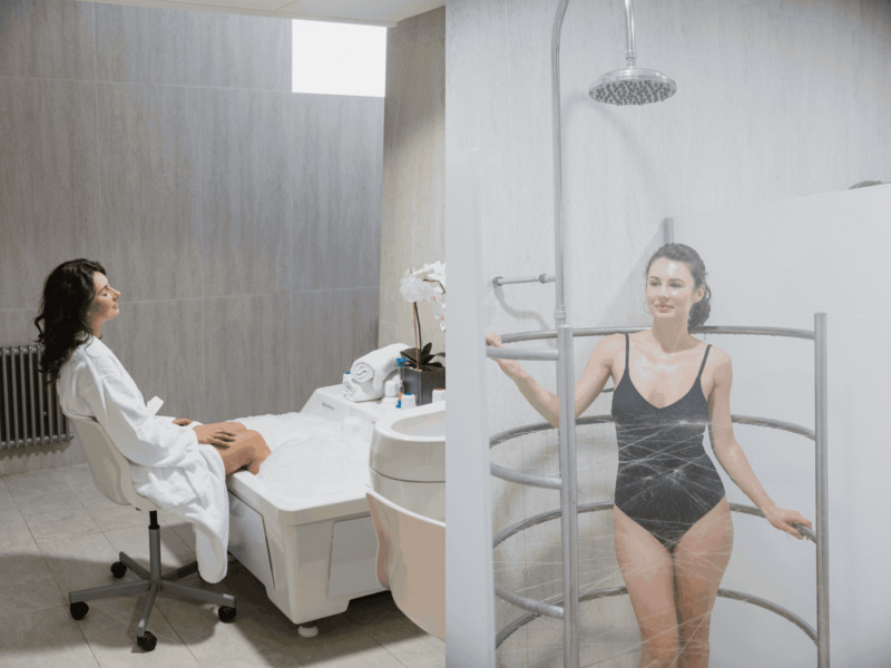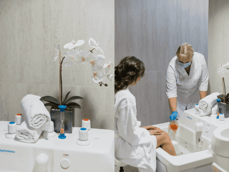 Имеются морские, жемчужные, ароматические ванны с добавлением различных питательных компонентов и экстрактами целебных трав. Контрастные души, циркулярный и Шарко полезны для сердечно-сосудистой и иммунной системы. Подводный душ-массаж действует на организм аналогично, но более бережно.
