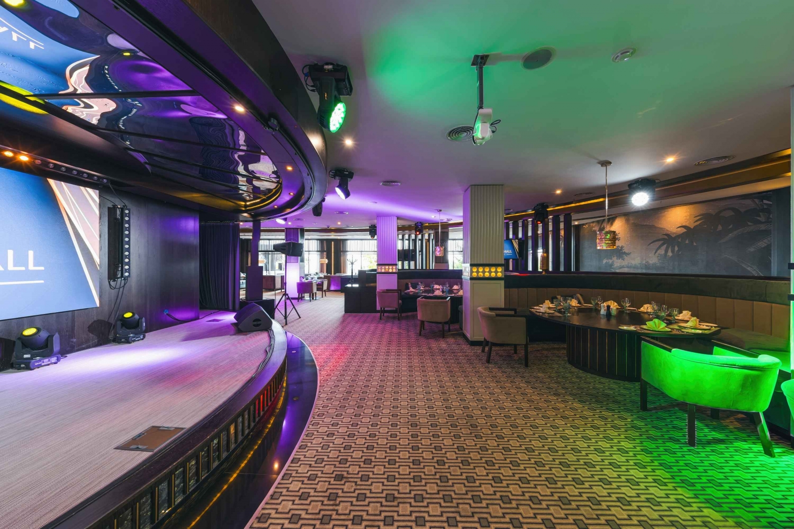 Имеется детское меню, классическая европейская кухня, так и авторская, сцена, где проходят выступления.