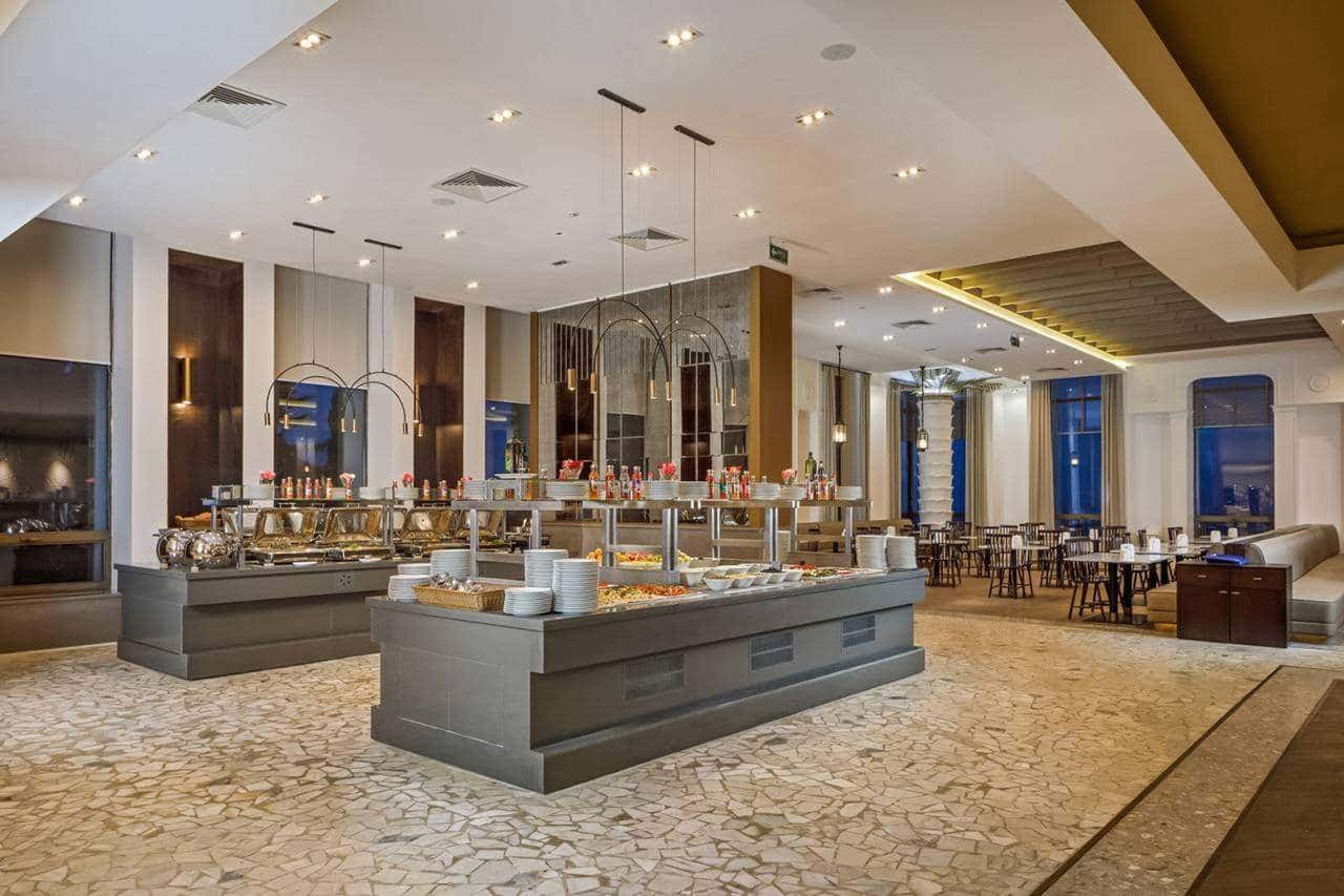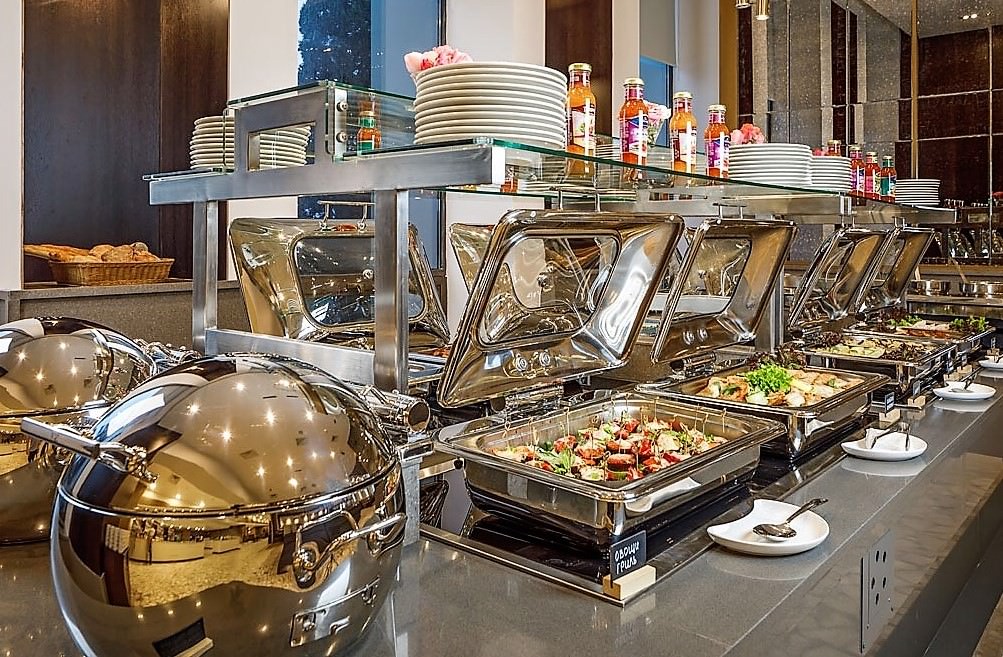 Трехразовое питание осуществляется по системе «шведский стол», где представлено обилие горячих блюд, закусок, салатов. Гостей порадуют красиво оформленные десерты и выпечка. Шеф-повара обладают высоким мастерством и их эксклюзивные блюда доставят удовольствие гурманам.